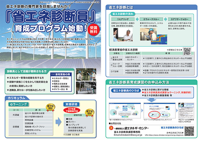 各事業で、省エネ診断の担い手になっていただく方を探しています。